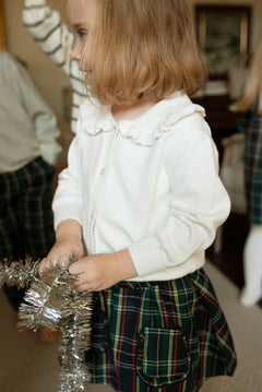The Winnie Skirt in Navy Tartan is holiday-ready and full of charm! This classic woven skirt features a festive navy tartan pattern and a sweet, twirly silhouette. Perfect for parties, pictures, and everything in between—it’s a darling piece that adds just the right touch of seasonal cheer.