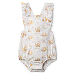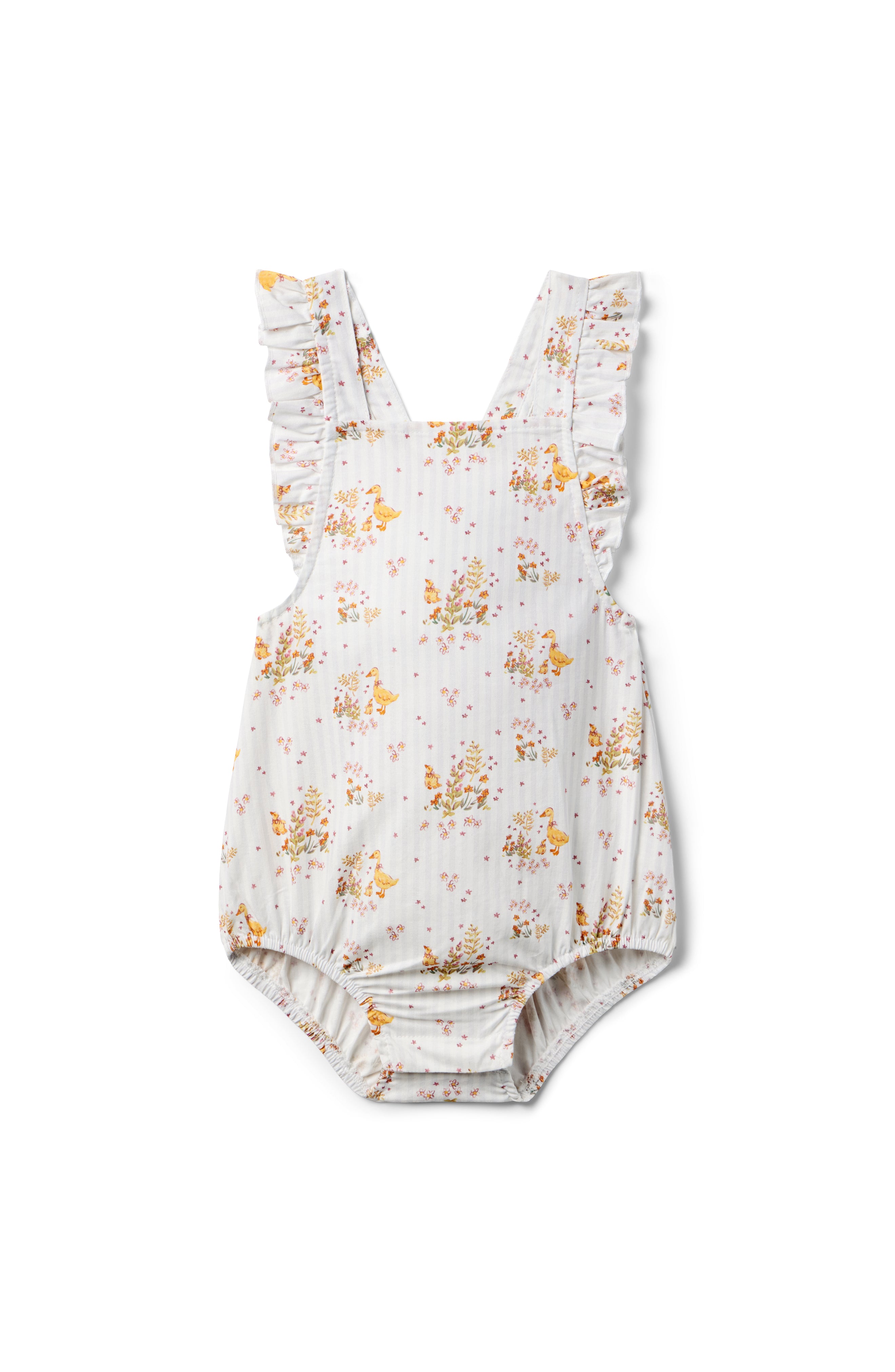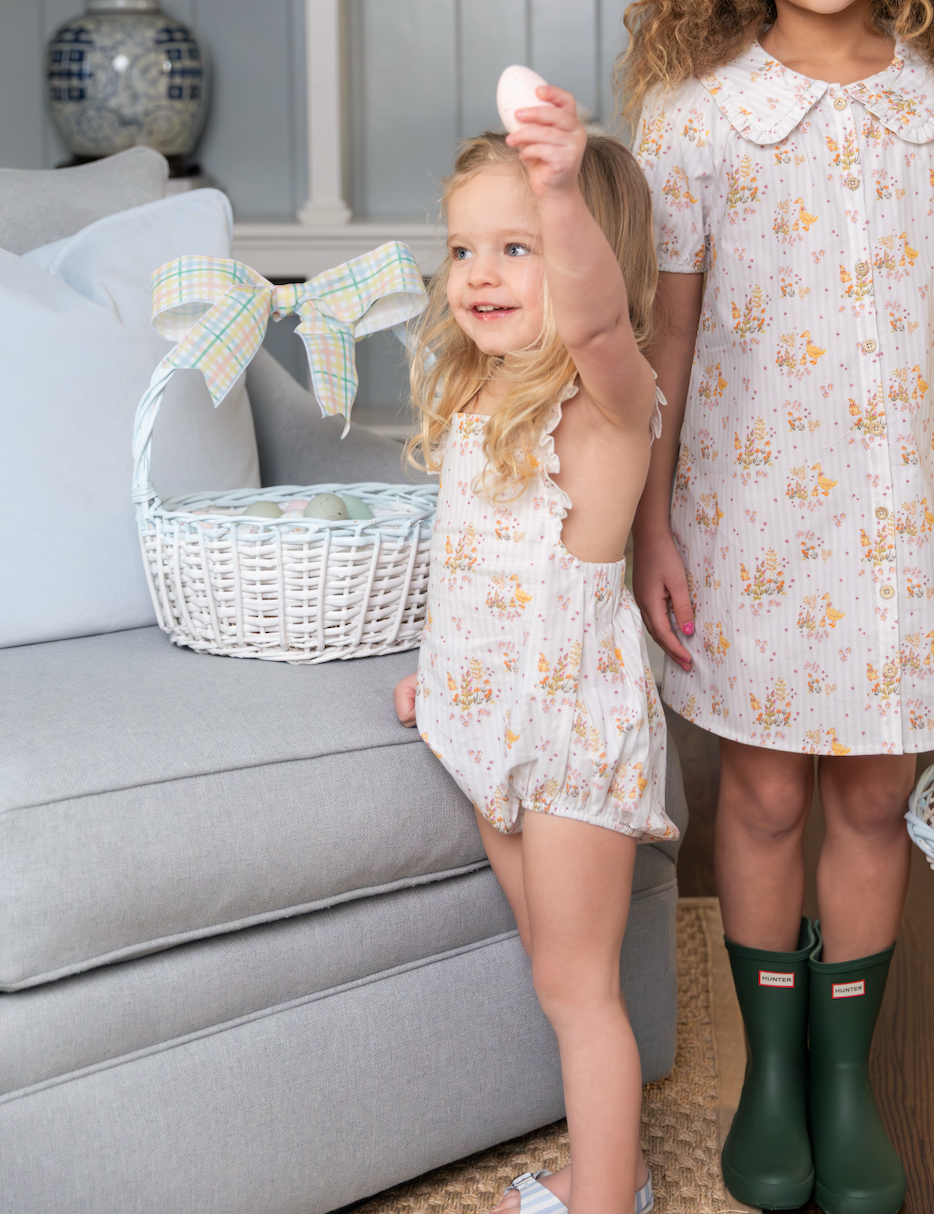The Sadie Bubble in Duckling Garden is as darling as it gets. Made from a breezy woven fabric with soft gathers and crisscross straps in the back, this sweet silhouette is full of charm from every angle.